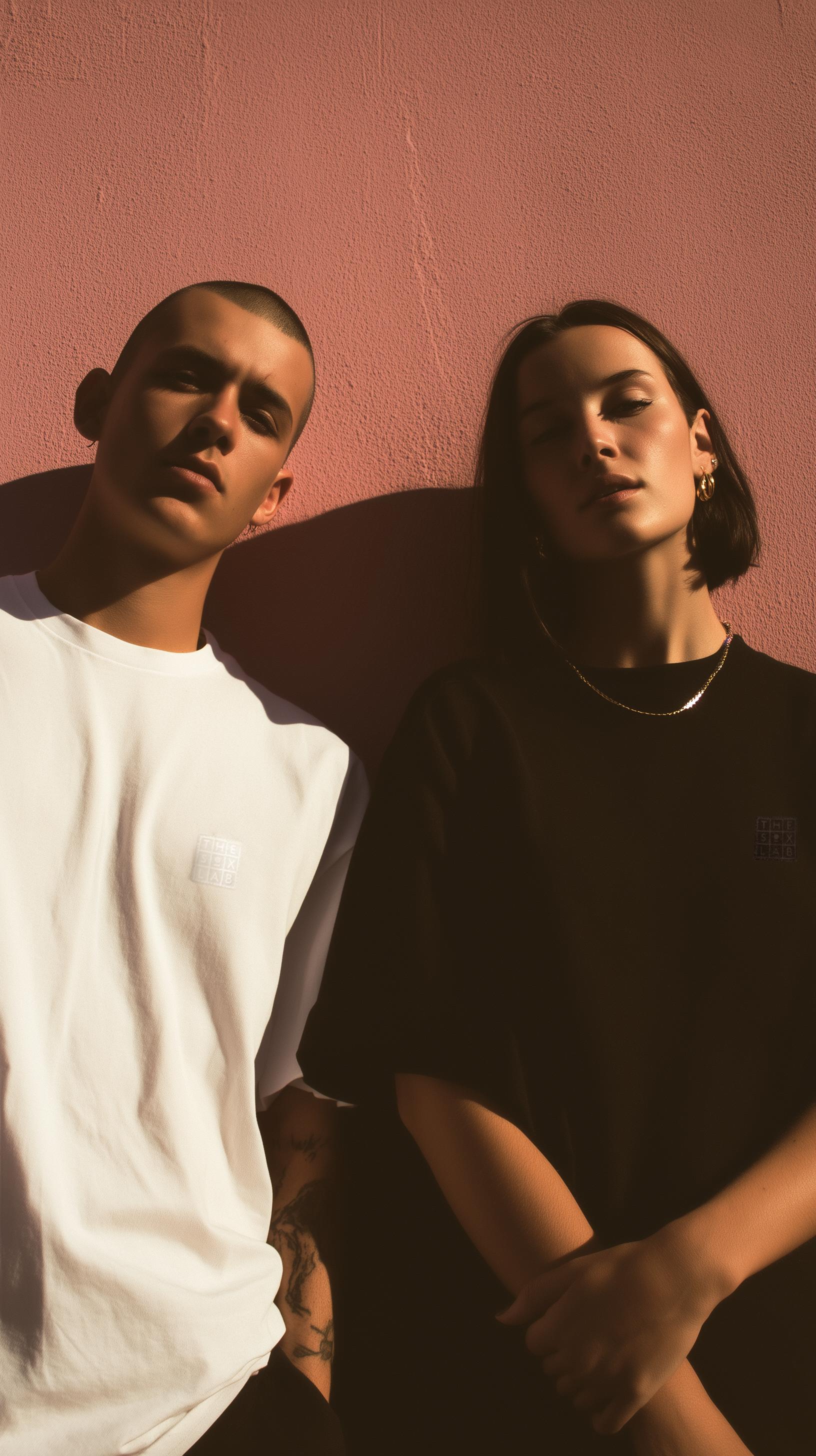 Pour un look hyper branché, nous avons fait le choix d’habiller les mannequins avec des tailles plus larges que leur taille habituelle :